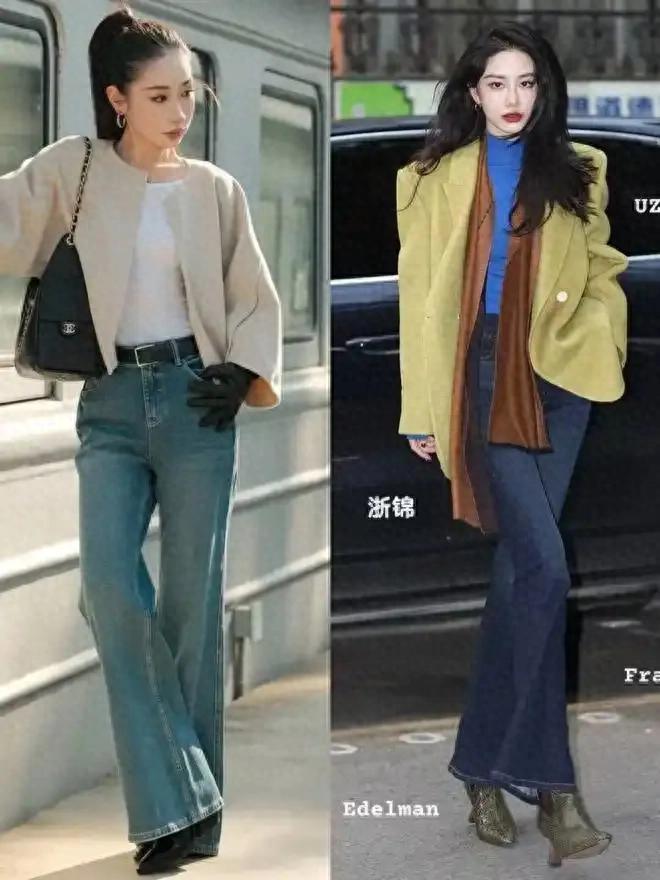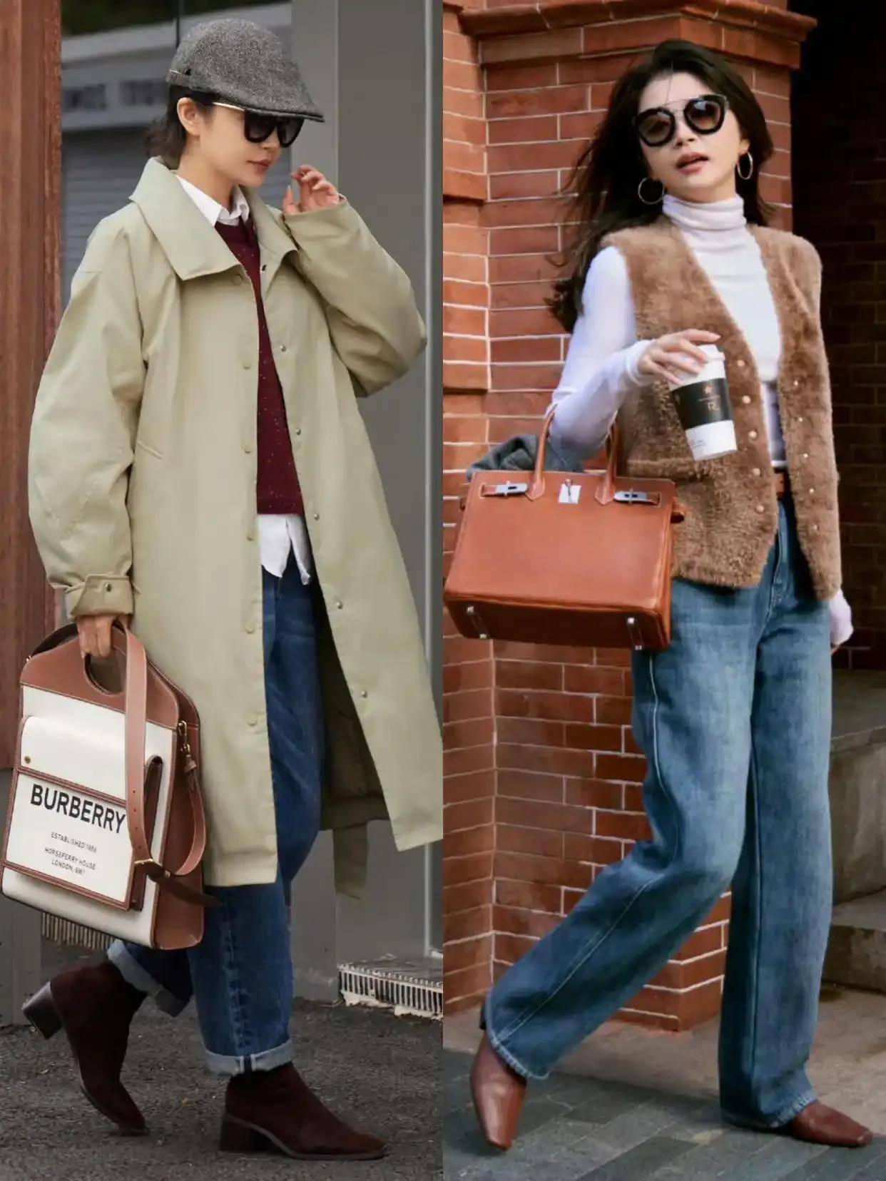 而且,穿鞋子的时候尽量带一点鞋跟,控制在 3~5cm 最佳,能够更好的延伸咱们的腿部线条。像三木时尚博主就选择了粗跟的棕色短靴和皮鞋搭配上牛仔裤,更提升整体造型的气质。
