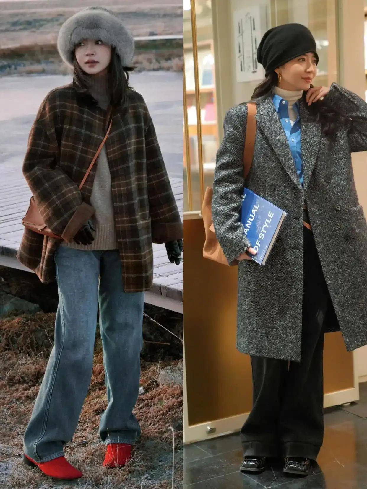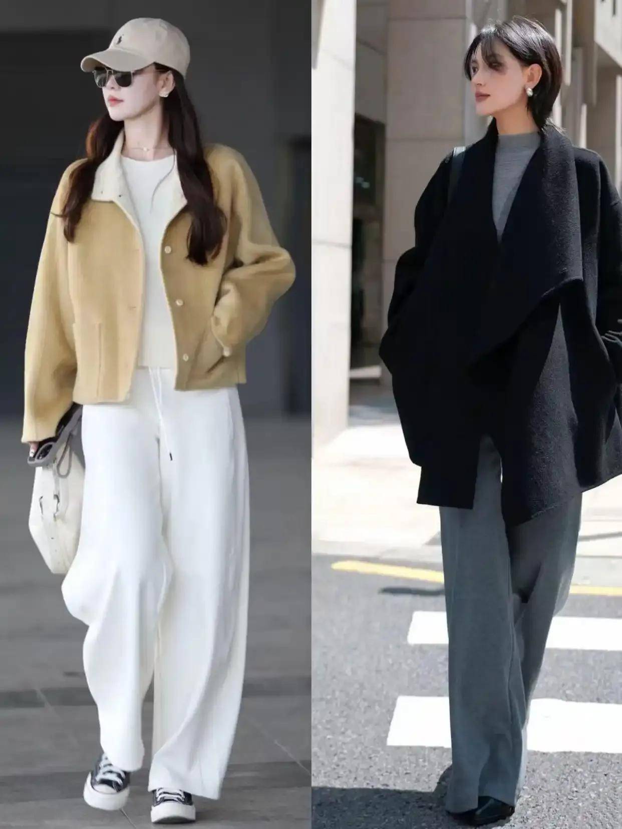 当我们看到上面这两双鞋的时候,你应该知道如何选择了。如果你选择的是厚重的皮鞋,自然不舒适,走起路来特别笨重,而且也没有想象中的那么洋气。休闲日常穿搭,还不如用一双老爹鞋搭配上黑色的阔腿裤和白色的羽绒服外套,这样更清爽更舒适。就算你今天走很远的路,也不容易累脚。